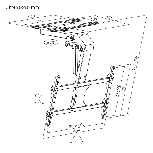 Không giới hạn không gian, Giá treo tv trần điện tử thông minh PLB-M0746DS với thiết kế xoay và tùy chọn lắp đặt chốt đôi hướng đến mục tiêu mang đến sự ấm cúng cao cấp cho trải nghiệm xem cả trong nhà và ngoài trời.